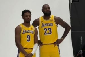 父子组合第二年!媒体日詹姆斯和布朗尼一起拍摄定妆照